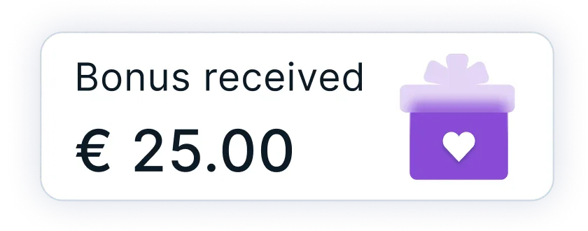 Pour chaque ami éligible que vous parrainez, vous recevez 25 €, et lui jusqu'à 100 €. C'est une excellente façon de part récompenses !
